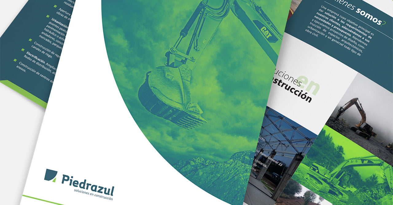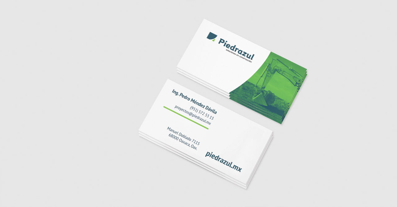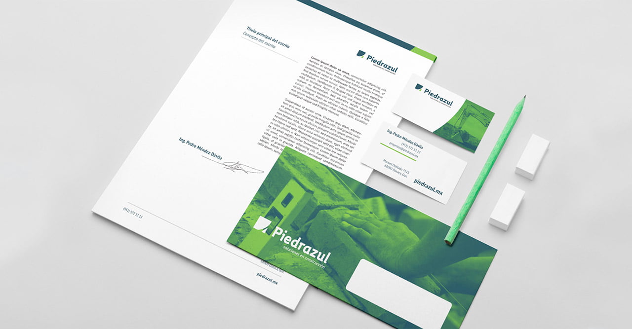 Para esta marca los colores juegan un gran papel, el verde y azul transmiten la seguridad y confianza que todos los proyectos requieren. Buscamos que todos los clientes de Piedrazul se sientan confiados de que en cada proyecto de construcción se pondrá todo lo necesario para que el resultado les inspire seguridad en su obra.